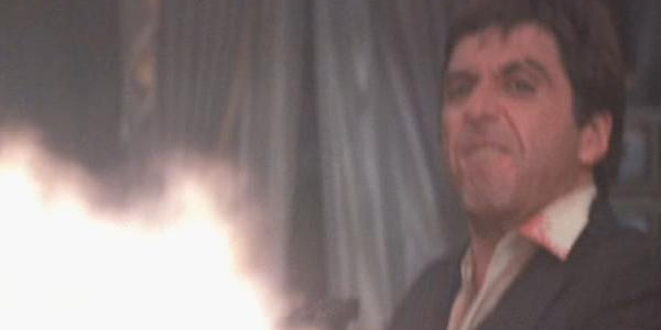 そして、映画史に残るラストのトニーの壮絶なる暴発シーン。トニーがM16マシンガンに装着したランチャーのグレネードでチンピラたちを吹っ飛ばし、次々と残りの麻薬ギャングどもをなぎ倒す。だが最後には硝煙の中で背後から撃たれ、のけぞってプールに落下。水面に浮かんで、たゆとうトニーの死体の上空にWORLD IS YOURSというネオンサインを掲げた飛行船が浮かんでいる鮮烈きわまりないラスト。そしてエイティーズを象徴するようなジョルジオ・モロダーのイカす音楽。